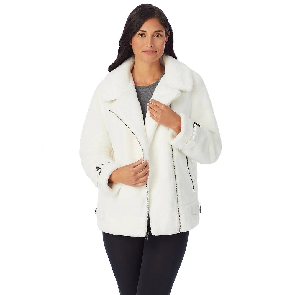 You’ll love the luxe winter style of this women’s Cuddl Duds plush faux-fur moto jacket.